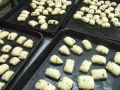そしてオレンジピールとチョコチップのパンは、以前「新作パン」でも取り上げました。今回は丸める作業がちまきたちには難しいかな?ってことで、平たく伸ばした生地を