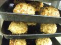 昨年秋に期間限定で販売され、期間終了後もあつーーーーいリクエストにより、再度復活した大人気パン。管理人もだーーい好きです。そしてこの写真のパン。ほら、よく見るとつぶつぶが見えませんか?そう、この丸いパンの生地は栗とくるみとごまの食パンです。ただ丸く成型しただけ?いえいえ。この成型には理由があります。それは・・・
