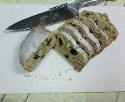 フェアリー奥様が「まだ名前も決まってないんですよ~」というのを戴いてしまいました。「いろんなものが全部入っているんですよ!」と仰るとおり、ドライフルーツにナッツがこれでもかってほど入っていますw生地よりフィリングの方が多いんじゃ??