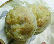 真ん中の3個並んだ白っぽいパンがそれ!